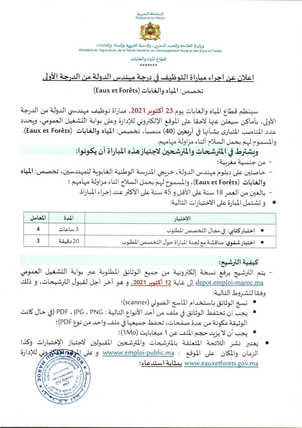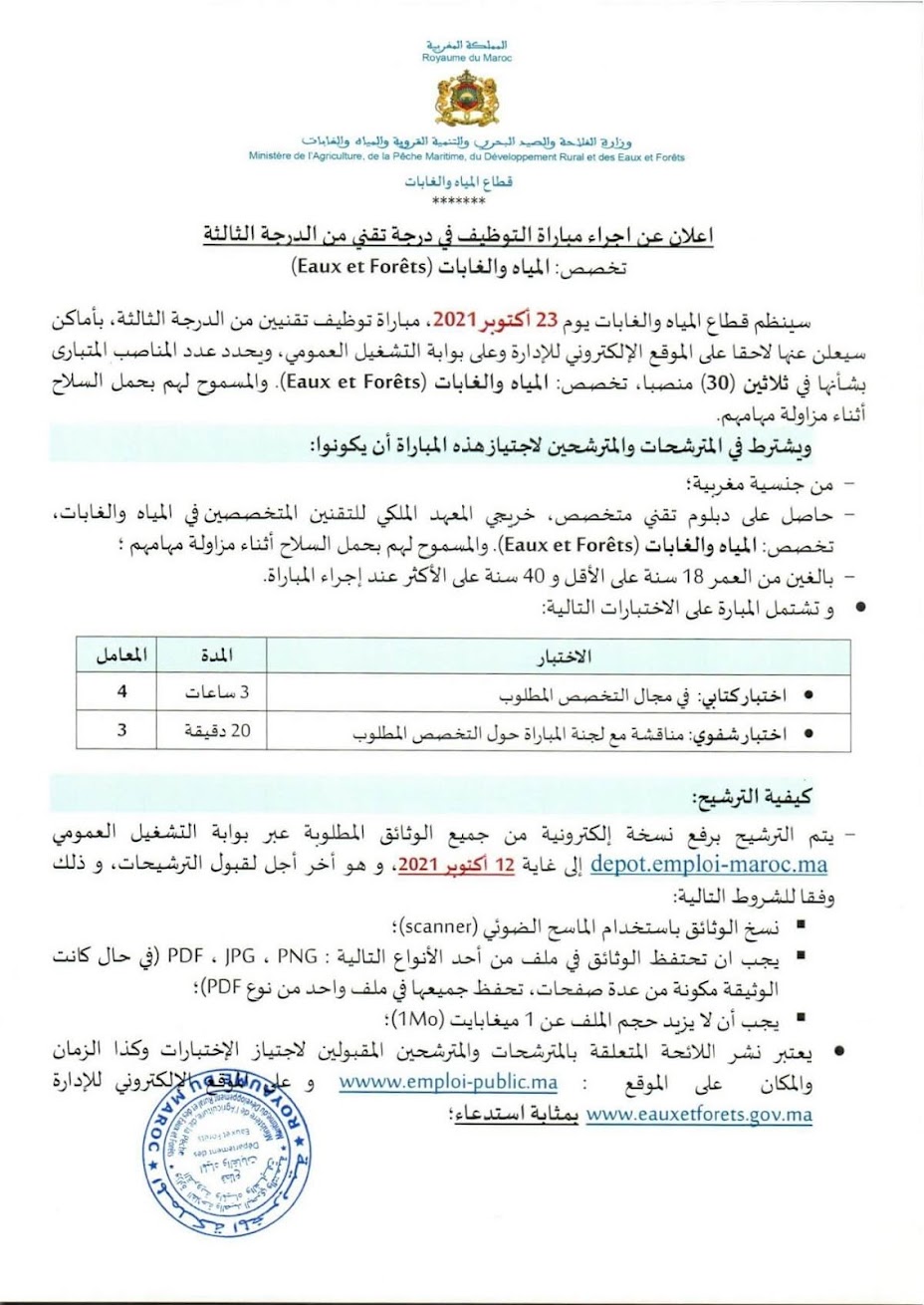 Avis de concours de recrutement au Ministère de l’Agriculture, de la Pêche maritime, du développement rural et des eaux et forêts – Département des eaux et forêts.